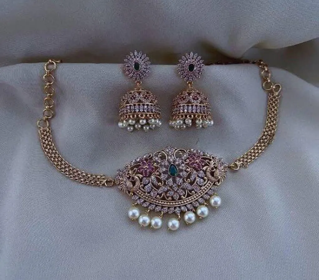Gold Plated Choker With Jhumki Earrings